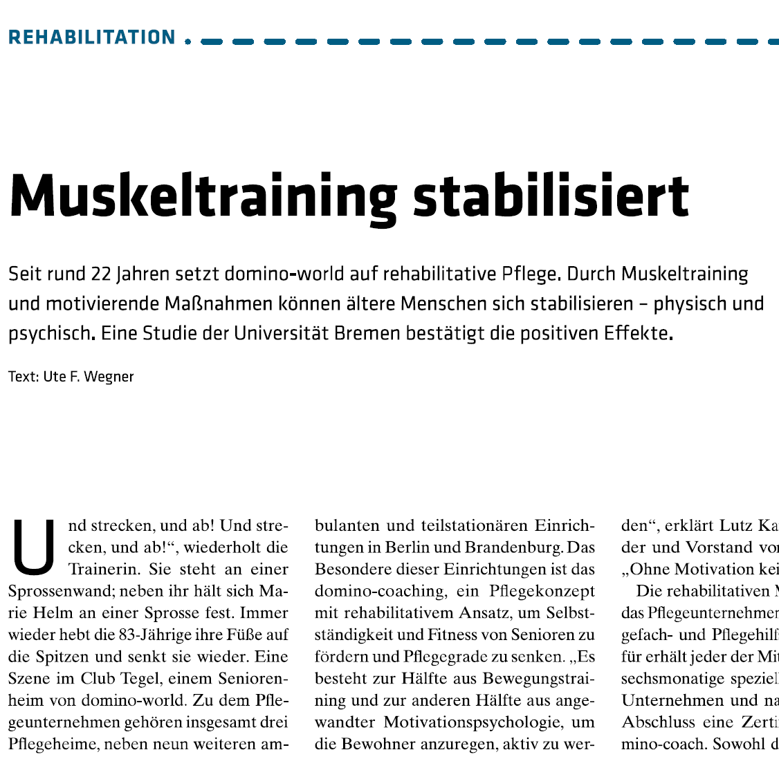 Eine Studie der Universität Bremen bestätigt die positiven Effekte des regelmäßigen rehabilitativen Muskeltrainings, das bereits seit 22 Jahren beim domino-coachingTM praktiziert wird.