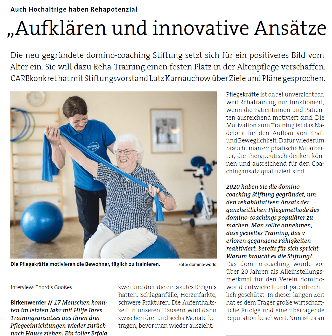 Die domino-coaching Stiftung macht das Pflegemodell domino-coachingTM immer mehr bekannt, sodass auch andere Pflegeeinrichtungen bald davon profitieren können.