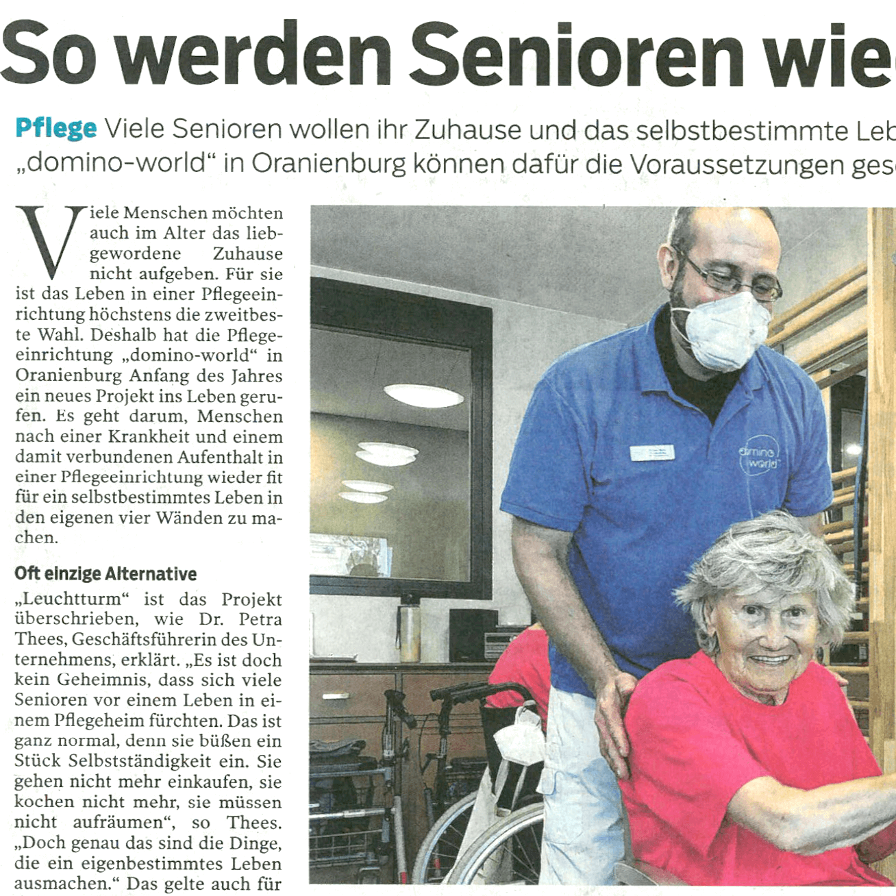 „Leuchtturm“-Projekt im domino-worldTM Club Oranienburg – ein neues Projekt im Rahmen des domino-coachingTM , das die Patienten wieder fitter und selbstständiger macht und auf die Rückkehr in die eigene Häuslichkeit vorbereitet.